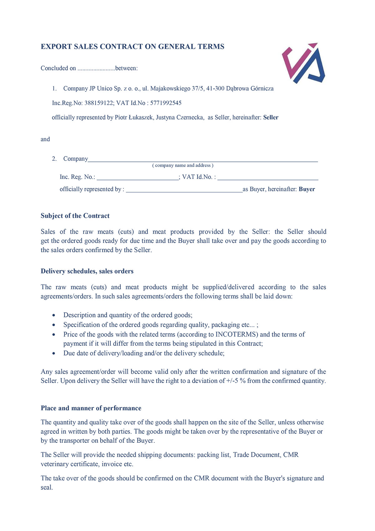 EXPORT SALES CONTRACT ON GENERAL TERMS